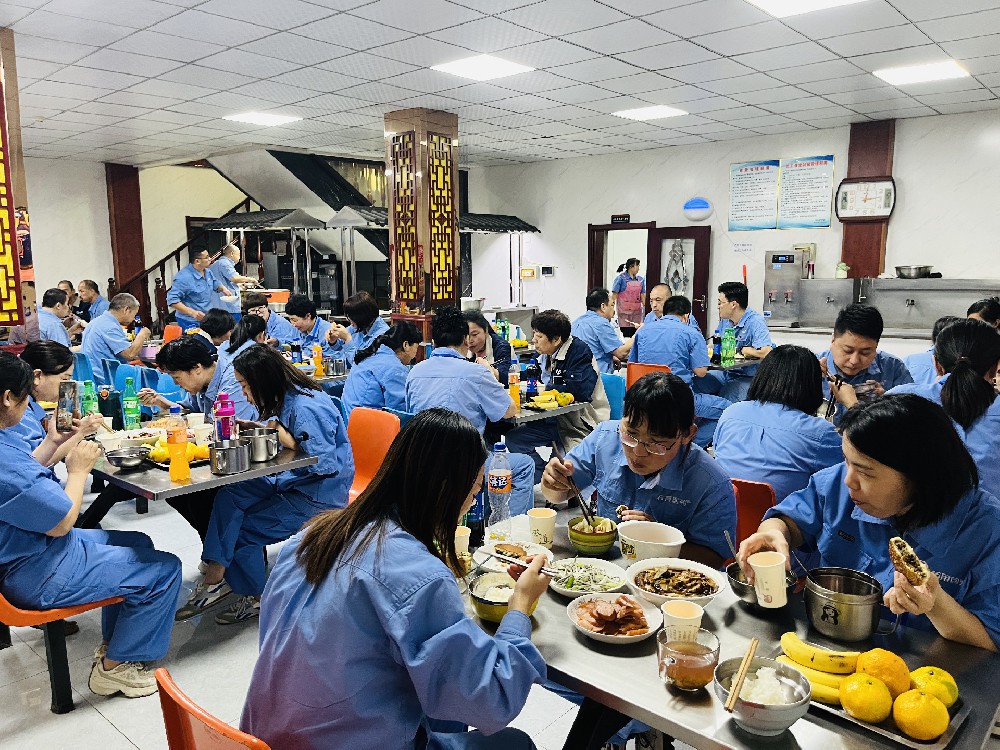 2023年9月29日,石育兩廠區(qū)在崗職工在食堂共慶雙節(jié)